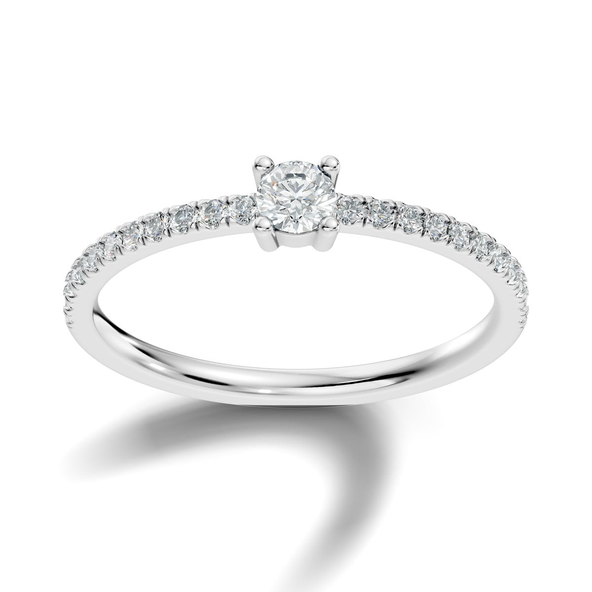 טבעת קלאסית ויוקרתית עם יהלום מרכזי בחיתוך עגול המשובץ בארבע שיניים. זרוע הטבעת מעוטרת בשורת יהלומים עגולים נוצצים, המוסיפים לה ברק ונוכחות אלגנטית. ניתן לבחור בין יהלומים טבעיים ליהלומי מעבדה – לפי ההעדפה האישית שלך.