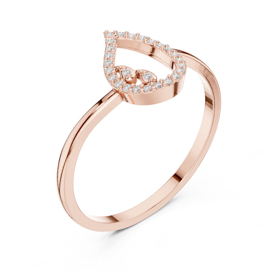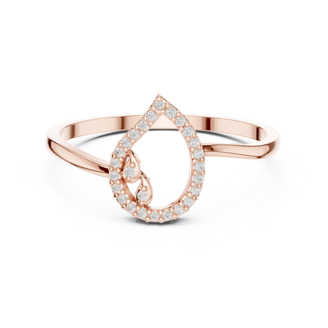 טבעת ייחודית בעיצוב טיפה אלגנטית המשובצת יהלומים טבעיים קטנים לכל אורכה, עם דגש על מרכז פתוח ועדין שמעניק מראה ייחודי ומודרני. העיטור הפנימי משובץ אף הוא ביהלומים טבעיים, ליצירת נגיעה רכה ואמנותית. טבעת זו משלבת תחכום ונוכחות ומתאימה לשימוש יום-יומי או כמתנה מיוחדת.