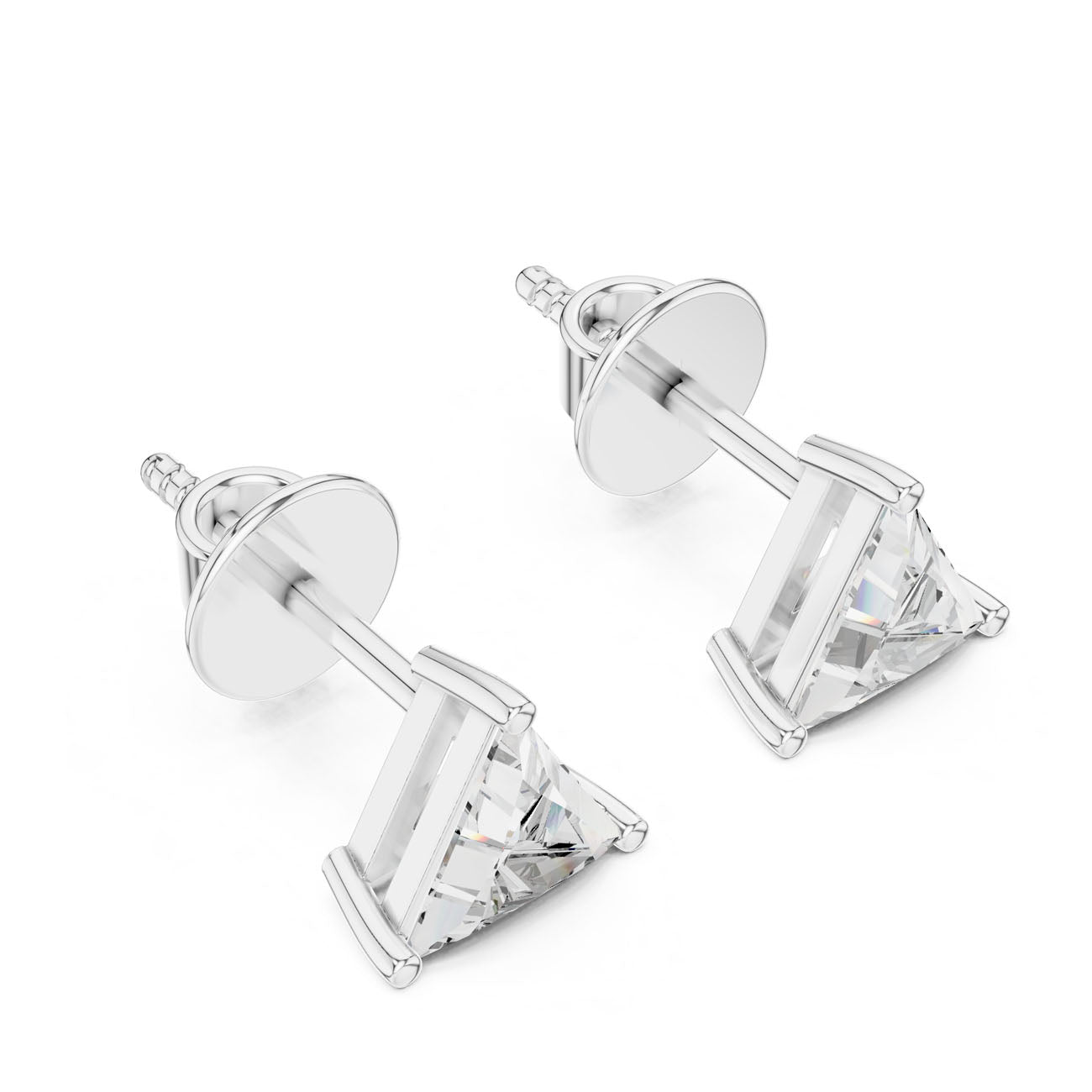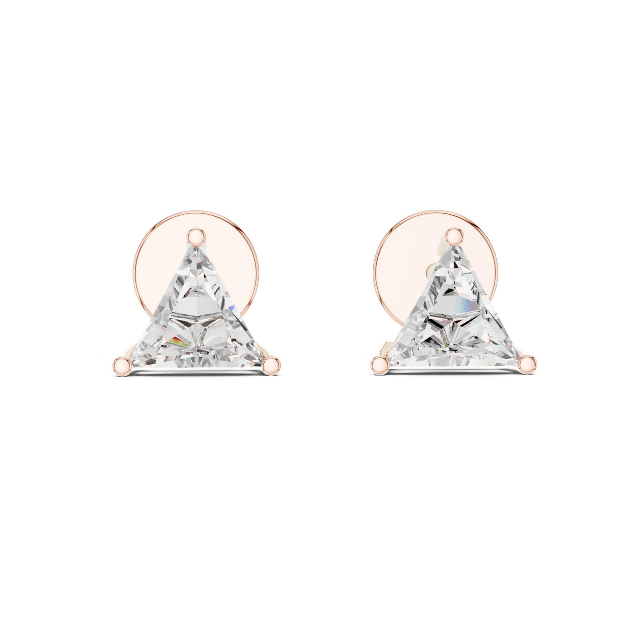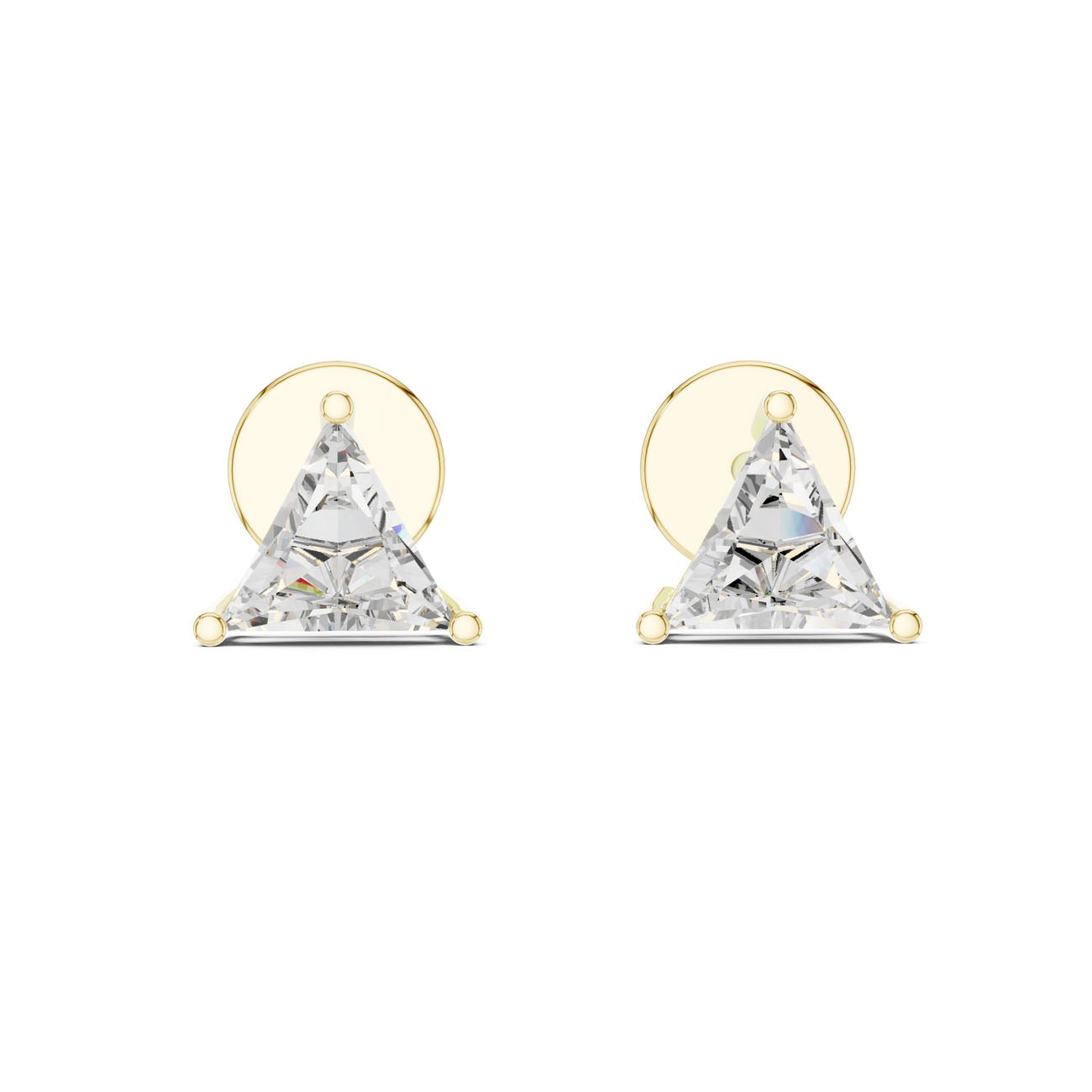 עגילי יהלום ייחודיים בעיצוב טריליון מודרני ואלגנטי. היהלומים בחיתוך המשולש נבחרו בקפידה לשילוב של ברק יוקרתי עם בחירה אחראית וידידותית לסביבה. השיבוץ המדויק בזהב 14 קראט מדגיש את הזוויות הייחודיות של היהלומים ויוצר מראה יוקרתי ומתוחכם.