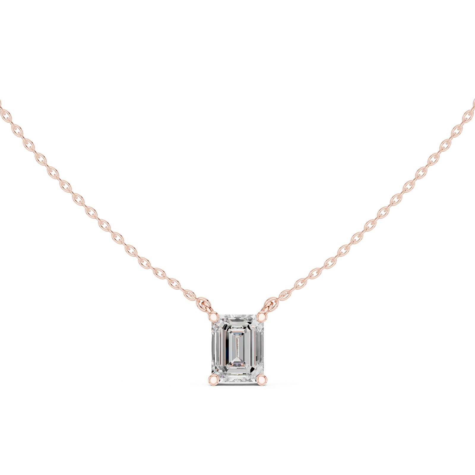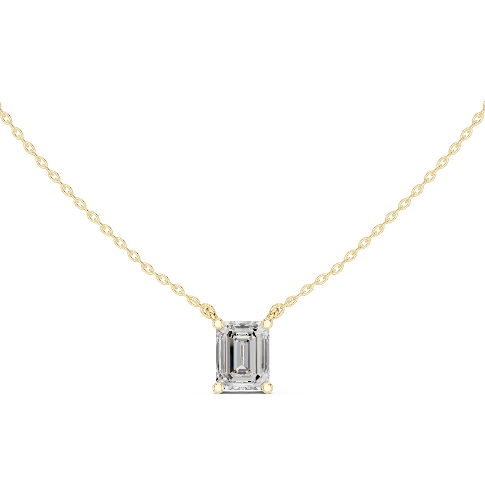שרשרת יהלום סוליטר עם יהלום בחיתוך אמרלד 2.50 קראט כולל שרשרת זהב