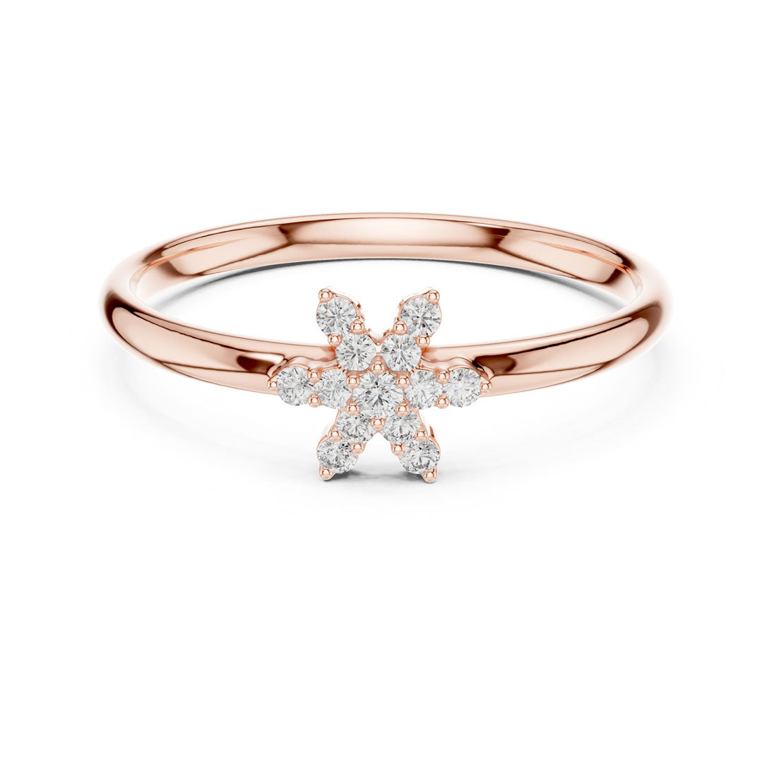 0.07 טבעת פרח עדינה עם יהלומים עגולים טבעי סה״כ קראט