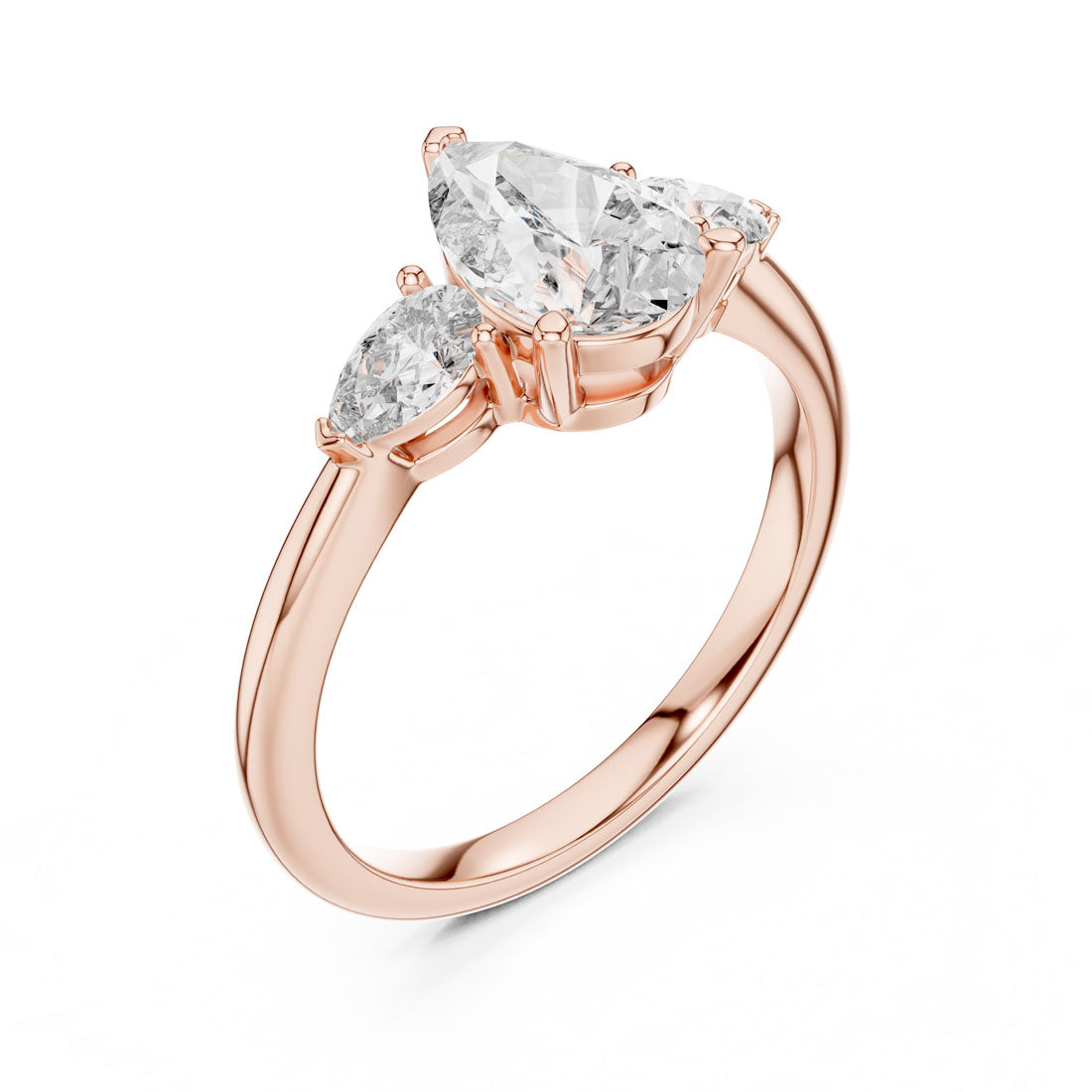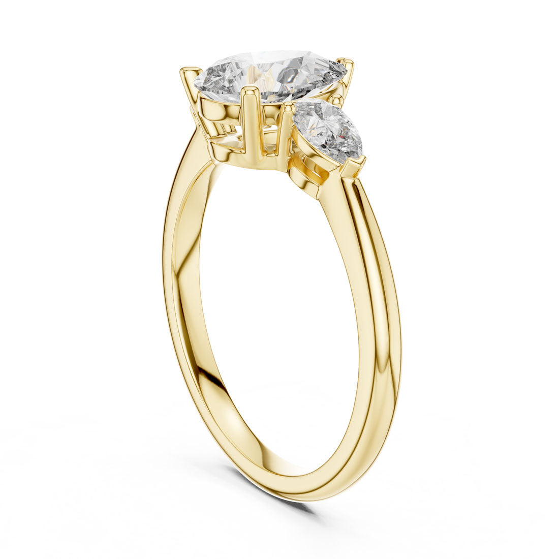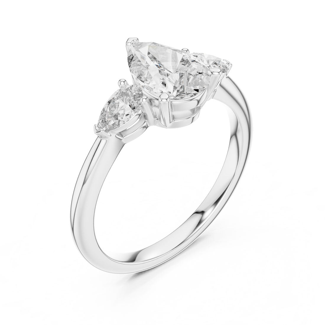 (1.50ct) טבעת משולשת עם יהלום מרכזי בצורת טיפה ושני יהלומים טבעיים