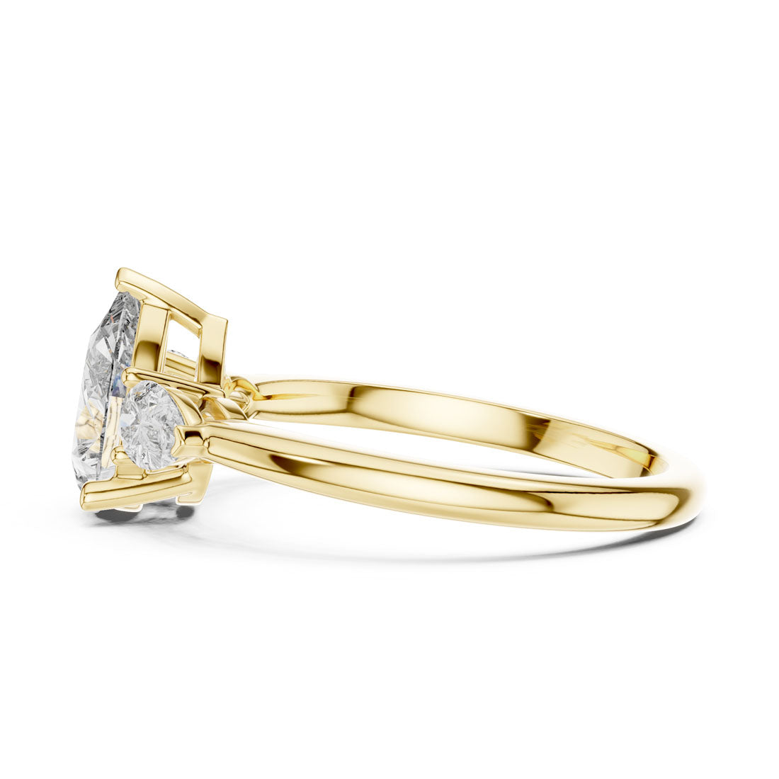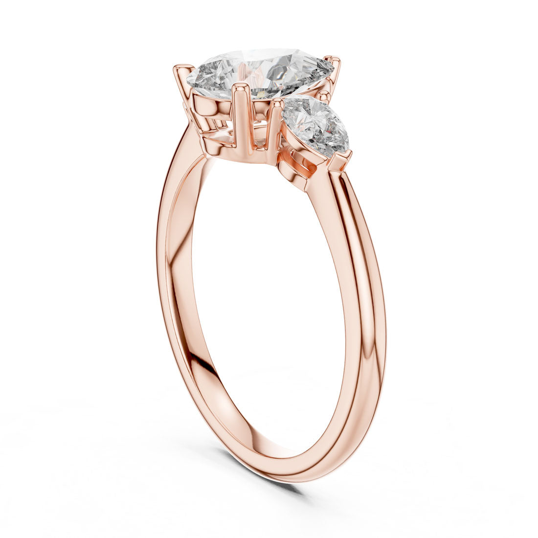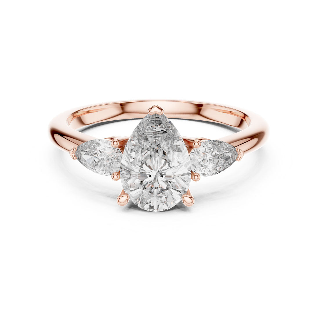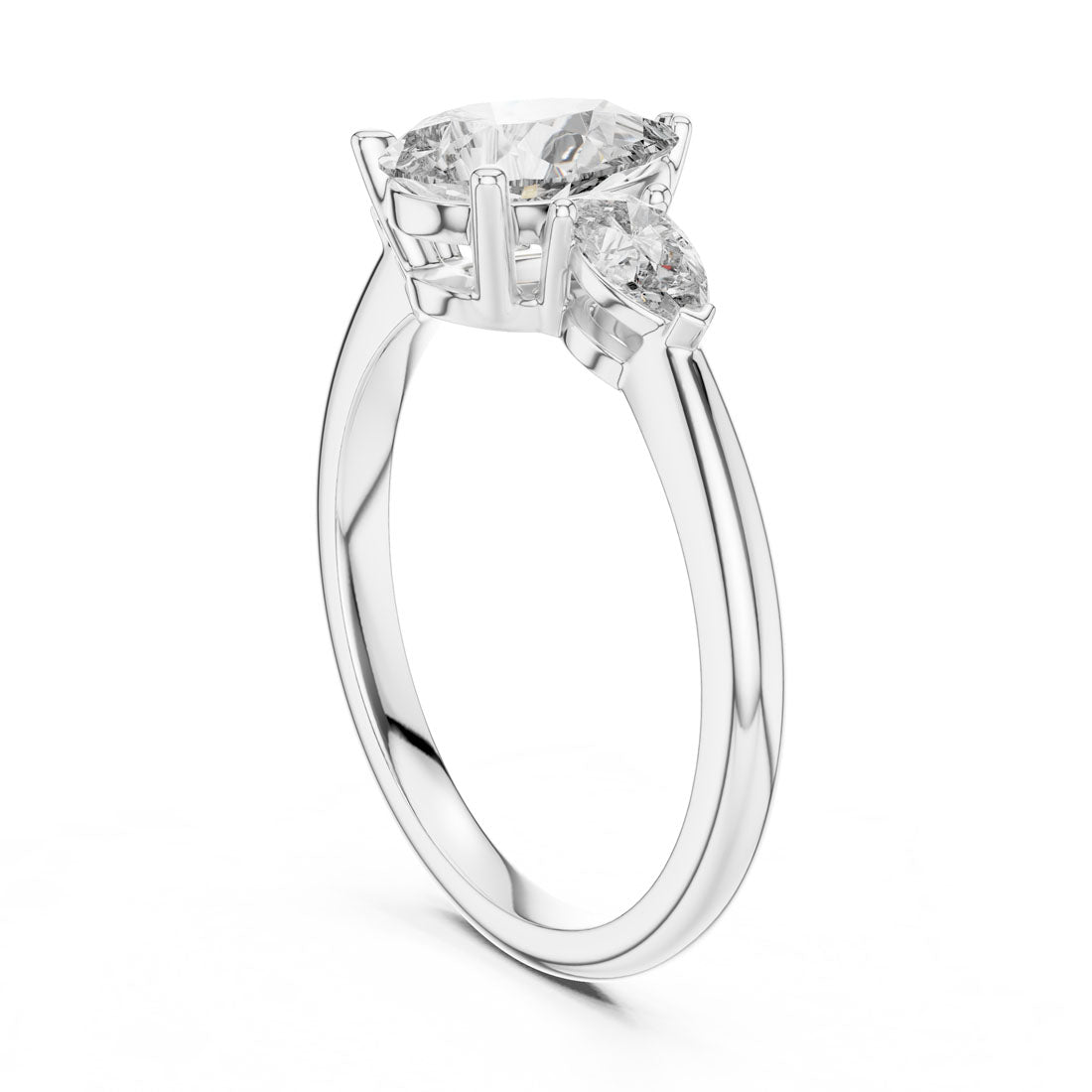 (1.50ct) טבעת משולשת עם יהלום מרכזי בצורת טיפה ושני יהלומים טבעיים