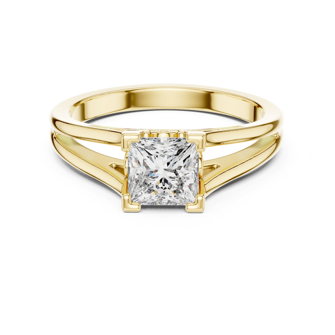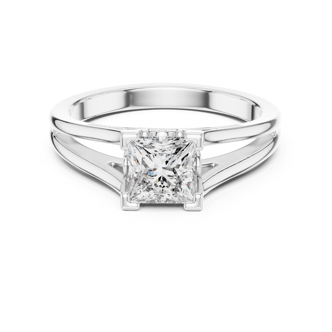 טבעת סוליטר קלאסית עם יהלום טבעי בעיצוב מרשים של שיבוץ גבוה וזרועות (DDLR-036) פתוחות
