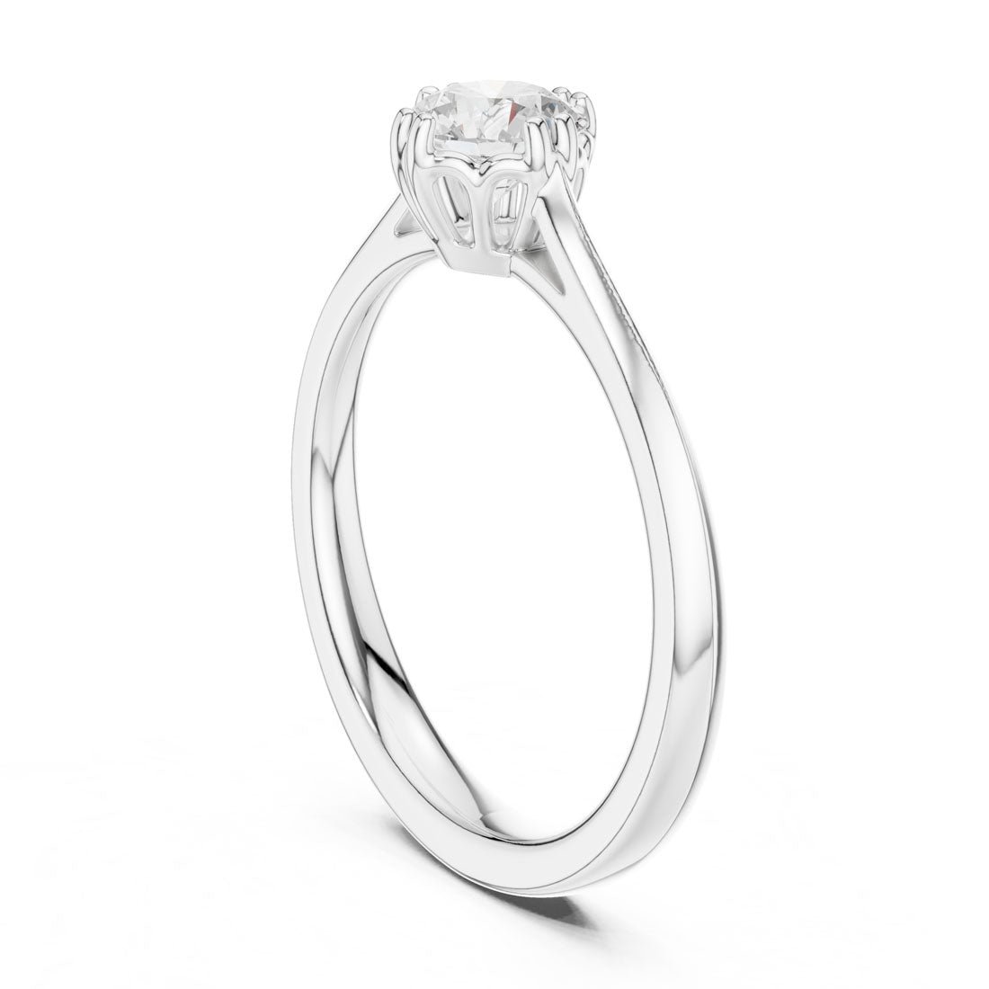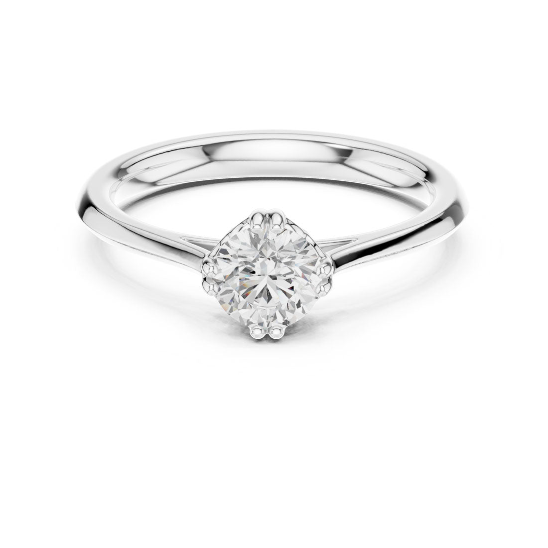 טבעת סוליטר קלאסית עם יהלום עגול במשקל 0.50 קראט. היהלום משובץ באופן שמאפשר לאור לחדור מכל כיוון ולחזק את הברק הטבעי. עיצוב השיבוץ המדויק והעדין מעניק לטבעת נוכחות יוקרתית אך מאופקת – מתאימה לכל רגע
