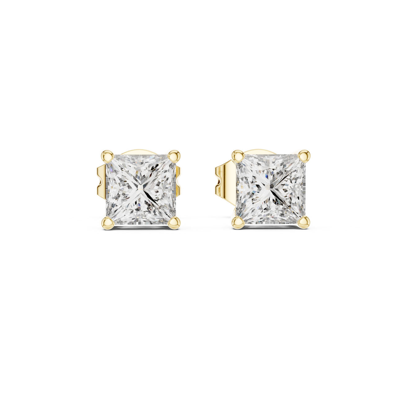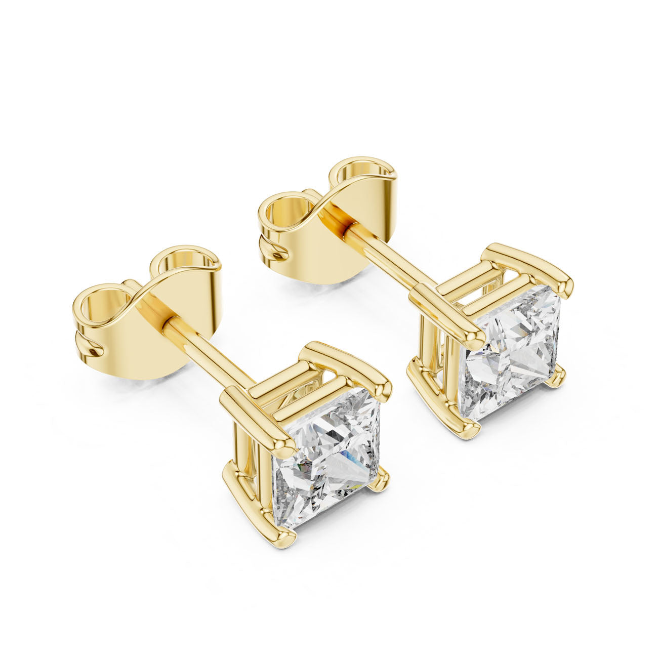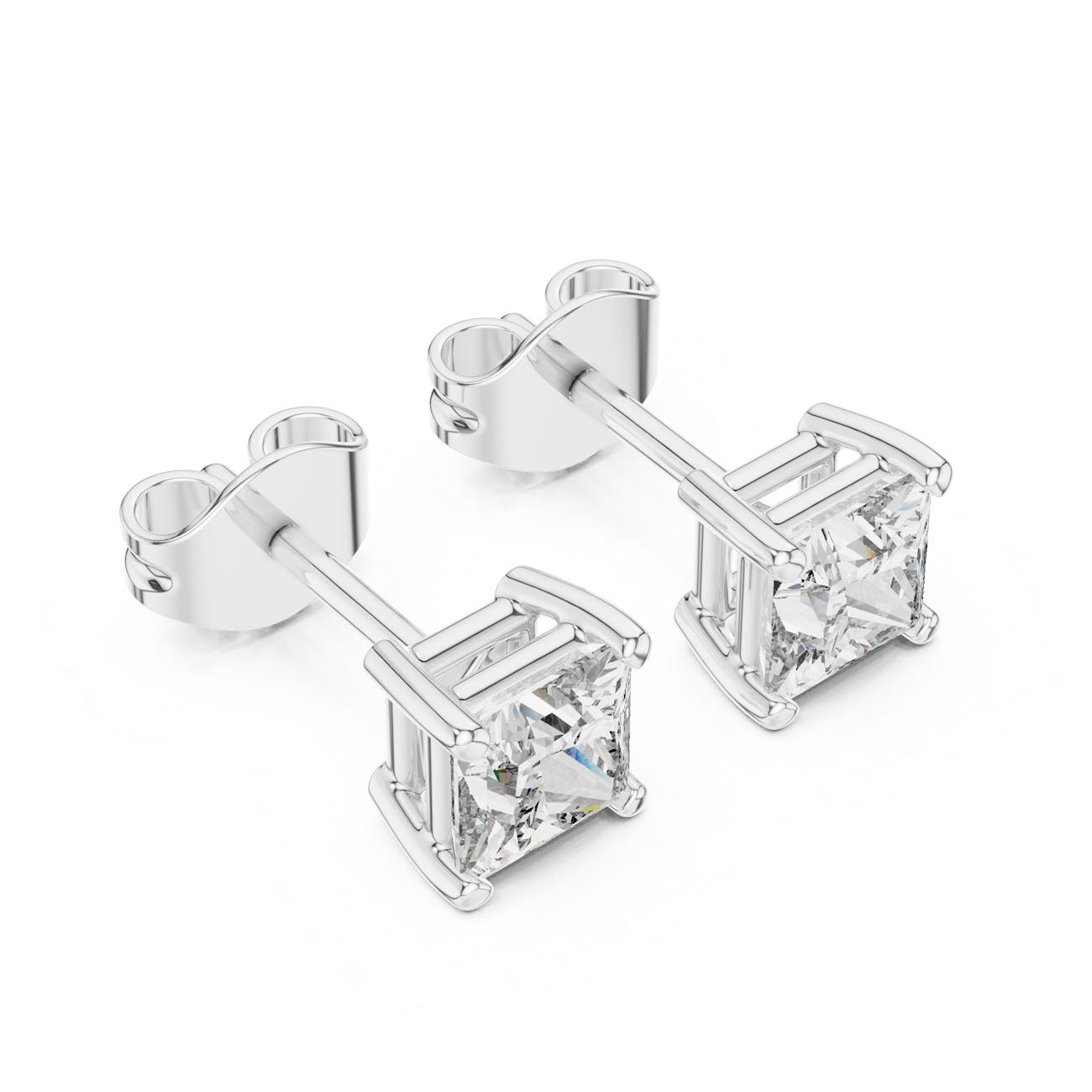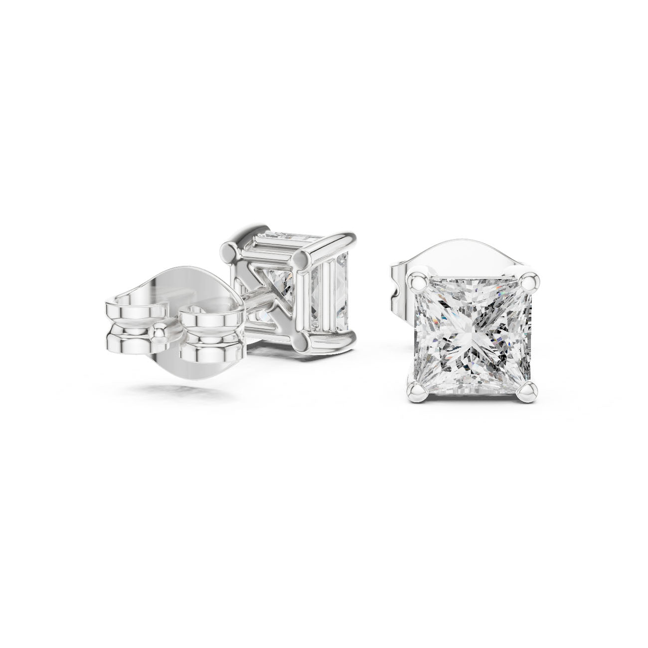 עגילי סטאד קלאסיים עם יהלומים מרובעים בחיתוך פרינסס, חצי קראט כל אחד, במשקל כולל של קראט אחד. היהלומים משובצים במסגרת...