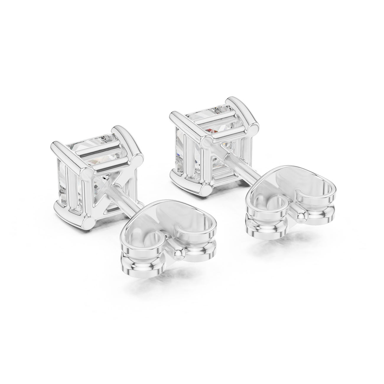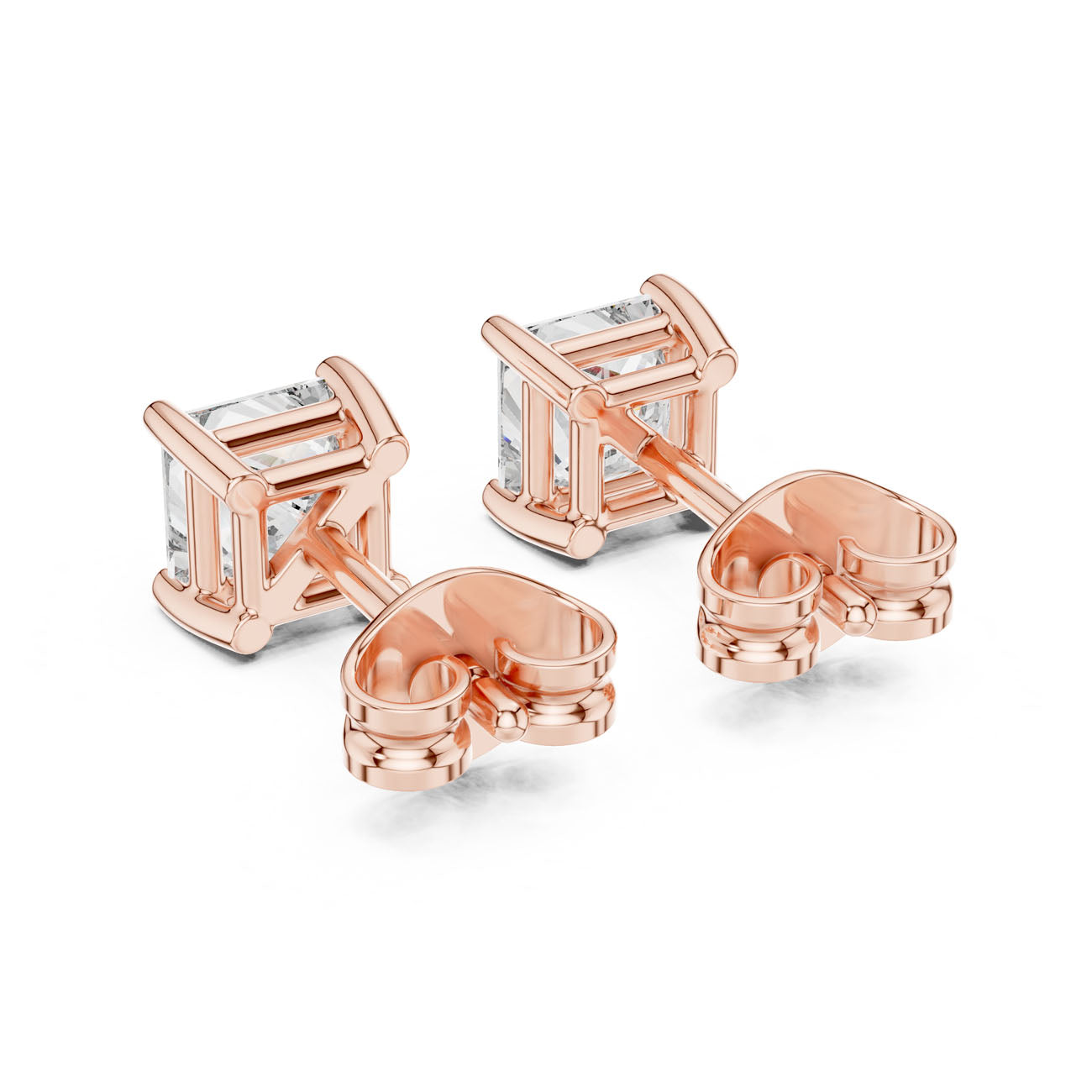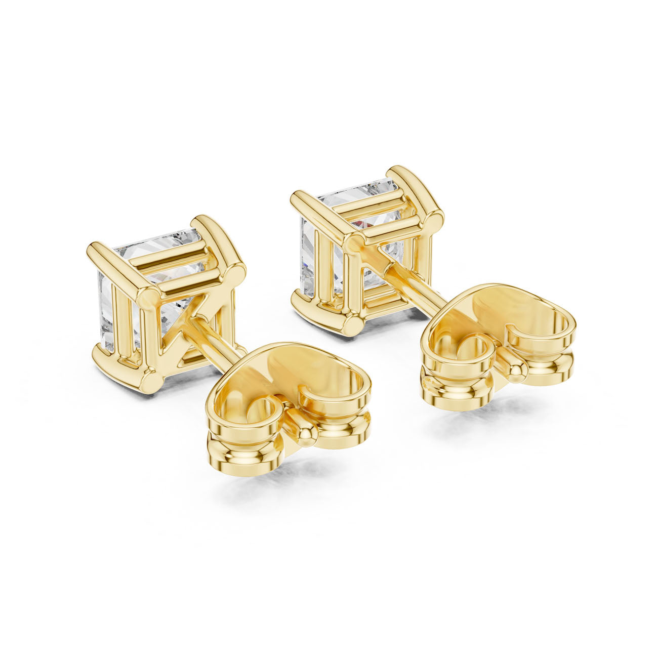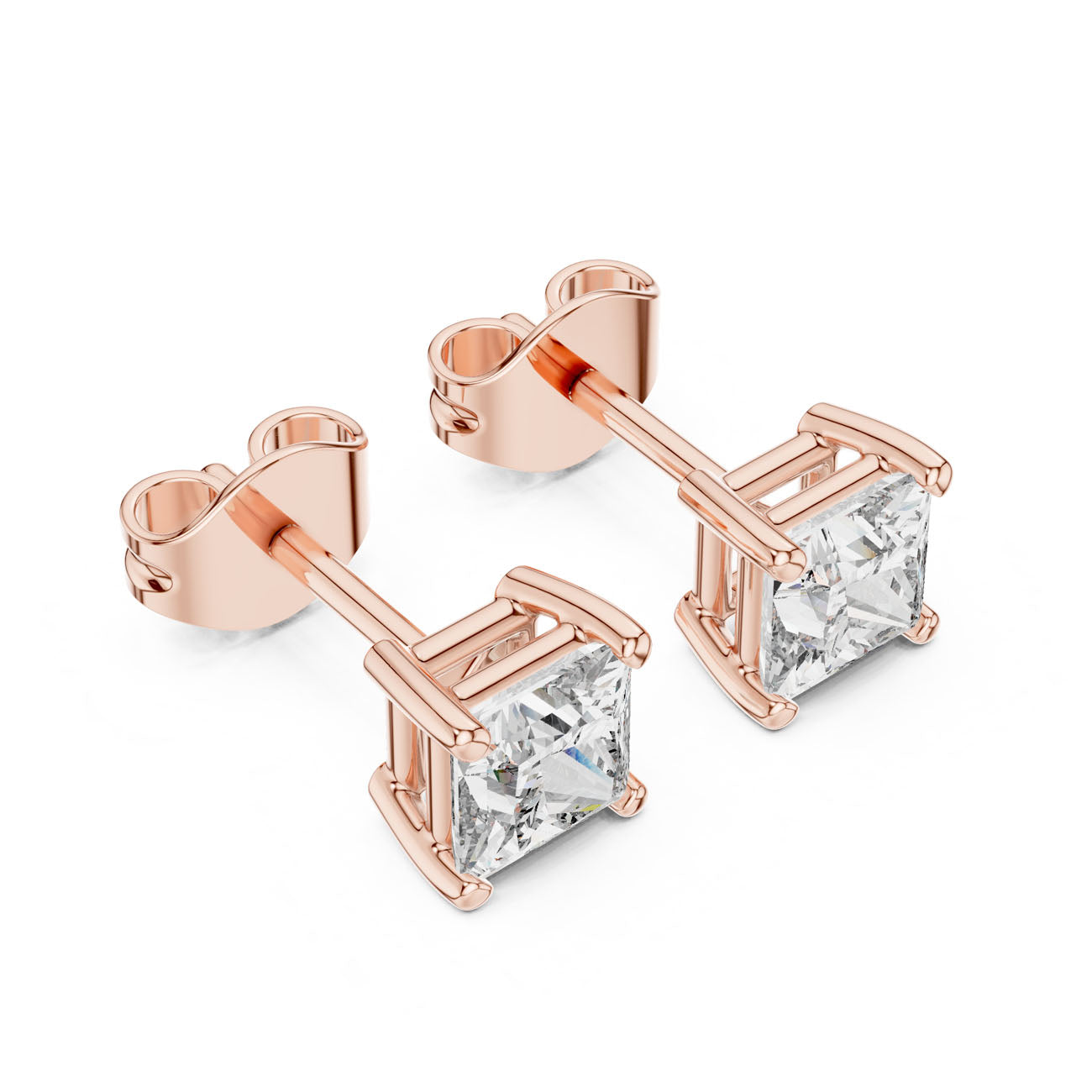 עגילי סטאד קלאסיים עם יהלומים מרובעים בחיתוך פרינסס, חצי קראט כל אחד, במשקל כולל של קראט אחד. היהלומים משובצים במסגרת...